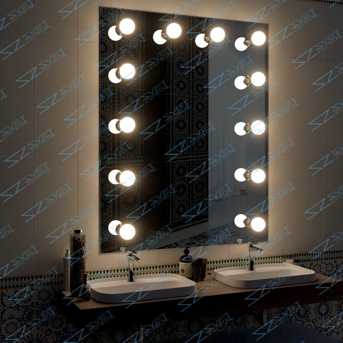 Количество сенсорных кнопок для управления разными опциями – подсветкой, линзой, обогревом или другими зависит от пожеланий заказчиков и функционала зеркала. Оно также выбирается покупателем при оформлении заказа.